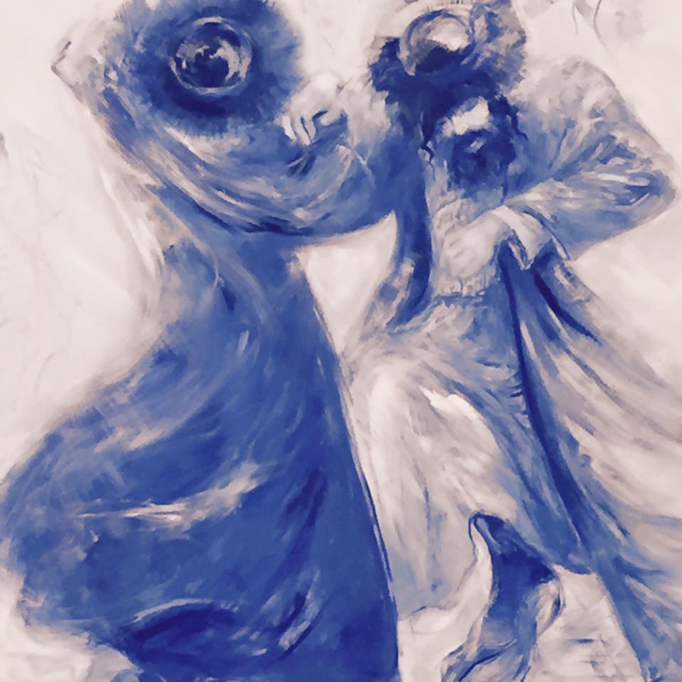 The artist Huvy (Ahuva) Elisha, known by all as Huvy, one of the most sought after and well collected contemporary impressionist painters in the Jewish world; deftly captures the spirit of their collaborative devotion, each brushstroke another step in this sublime human dance painted with the celestial colors of a heavenly blue.